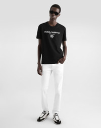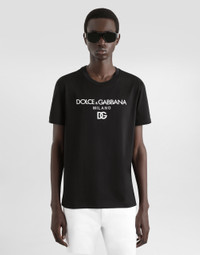 Cotton jersey T-shirt with DG embroidery and print: • Regular fit • Round neck • Short sleeves • The piece measures 72 cm from the rear collar seam on a size IT 48 • The model is 185 cm tall and wears a size IT 48 • Made in Italy Care And Details External composition: 100% Cotton