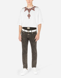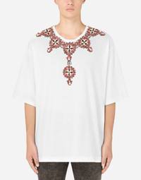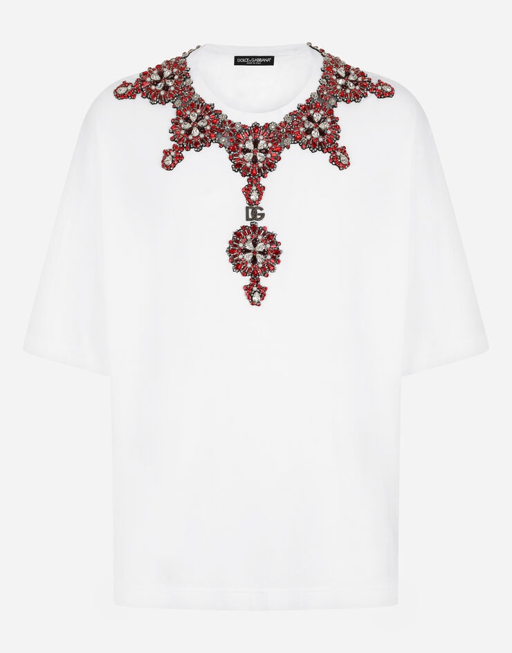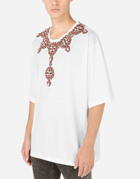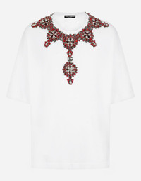 The “DG Light Therapy” fashion show is a tribute to life itself, positivity and folklore. Distinctive luminaries become wonderful photographic prints to create special, iconic pieces when combined with embroidery, crystals, sequins and jacquard designs. Cotton jersey T-shirt with synthetic crystal embellishment and the metal DG logo: • Regular fit • Round neck • Short sleeves • The piece measures 71.5 cm - 28.1 inches from the rear collar seam on a size IT 48 • The model is 185 cm - 72.8 inches tall and wears a size IT 48 • Made in Italy Care And Details External composition: 100% Cotton