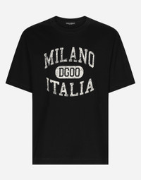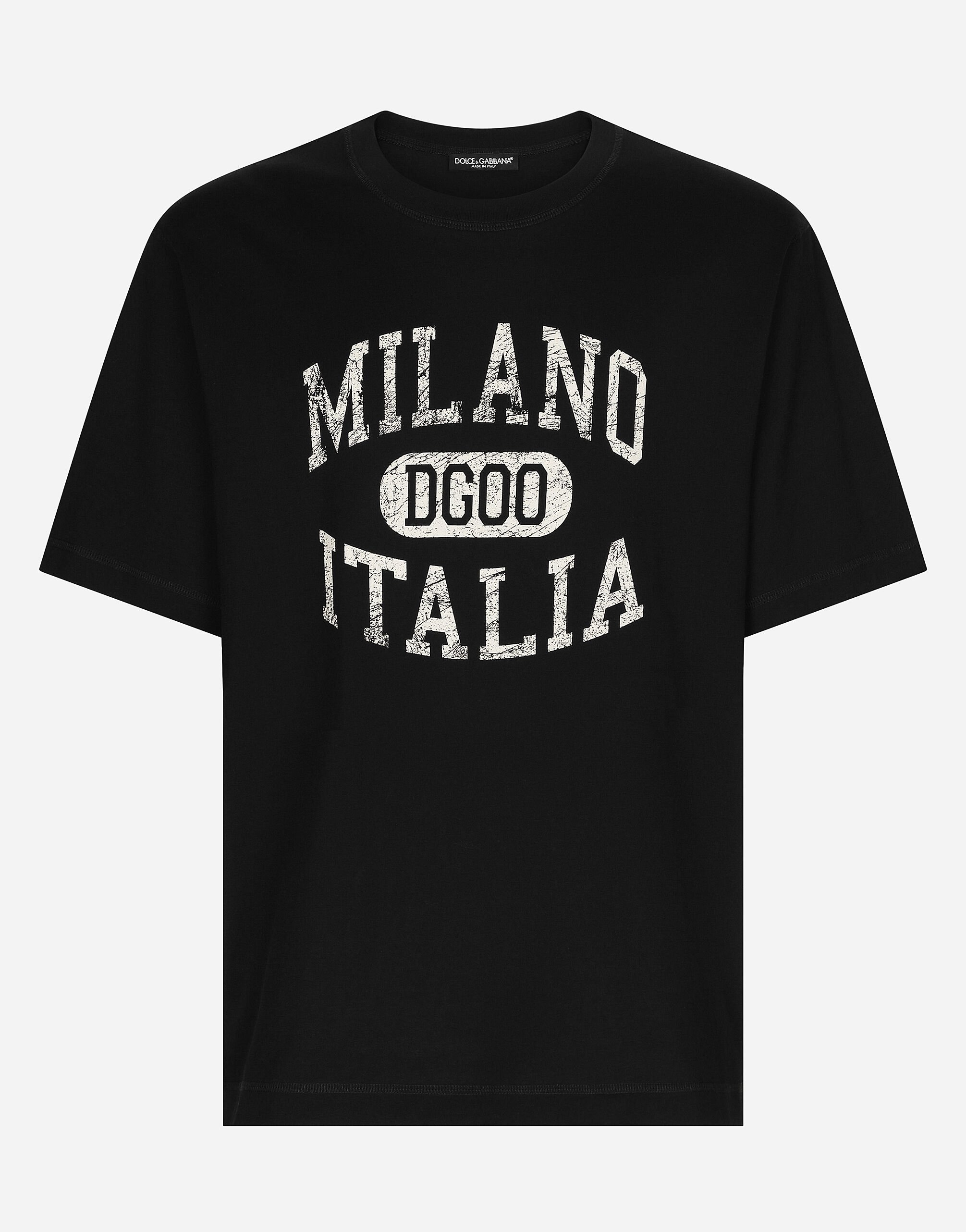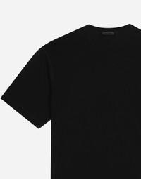 The Palermo collection represents the link between the Sicilian man’s world and the unspoiled nature of the island. A language marked by warm hues – sand, cream, Nero Sicilia black – floral paintings and iconic prints. The Dolce&Gabbana closet must-haves have been reworked in different materials, in pursuit of a new form of harmony. A collection rich in suggestion, such as the stripes inspired by the old mattresses of the 1940s and 1950s, and the timeless aesthetic of the looks. Cotton jersey T-shirt with DG logo print: • Black • Regular fit • Stretch knit round neck • Short sleeves • The piece measures 73 cm from the rear collar seam on a size IT 48 • Made in Italy External composition: 100% Cotton