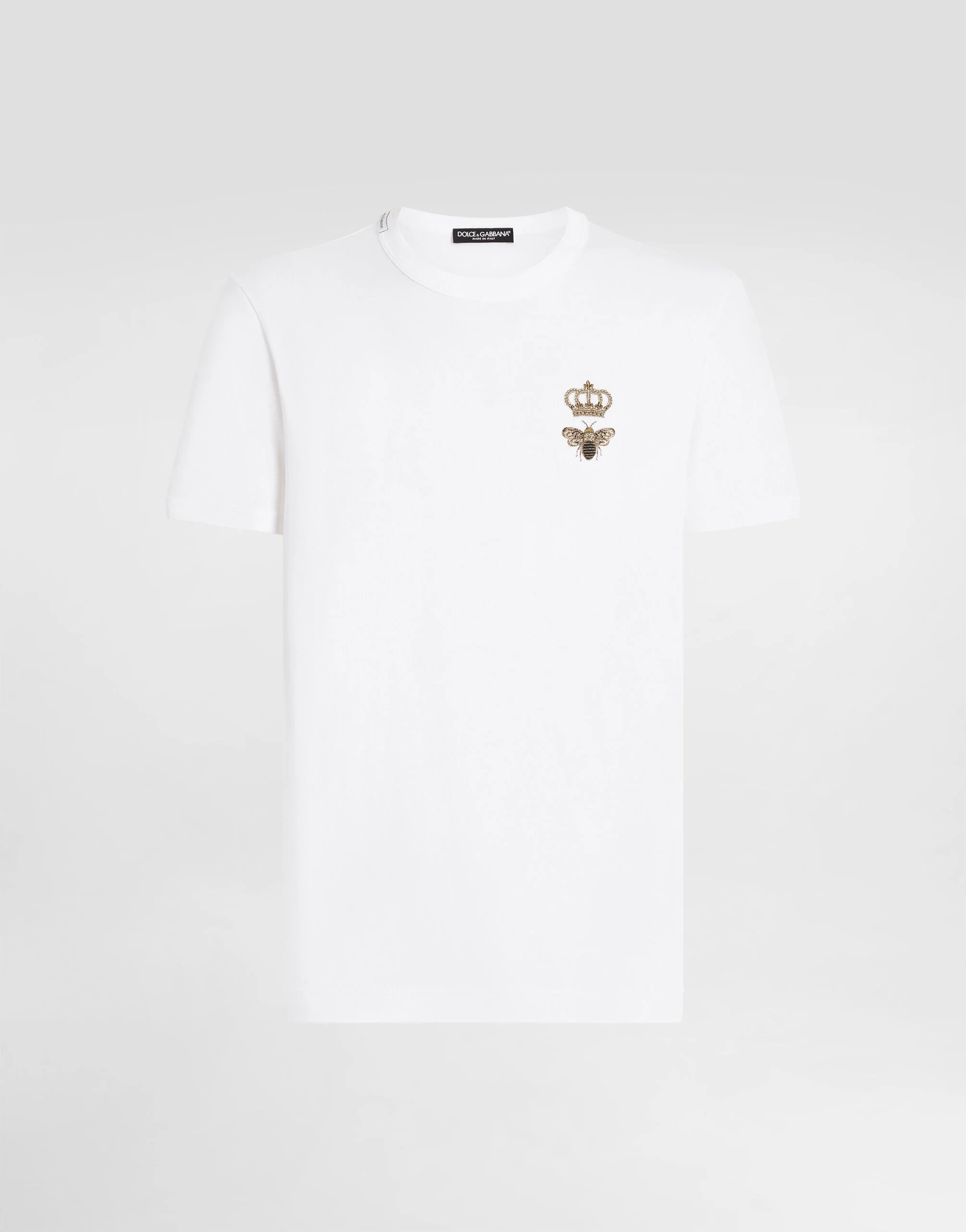 Cotton jersey T-shirt with lurex embroidery: • White •Regular fit •Round neck • Short sleeves •The piece measures 72 cm from the rear collar seam on a size IT 48 •The model is 185 cm tall and wears a size IT 48 •Made in Italy Care And Details External composition: 100% Cotton