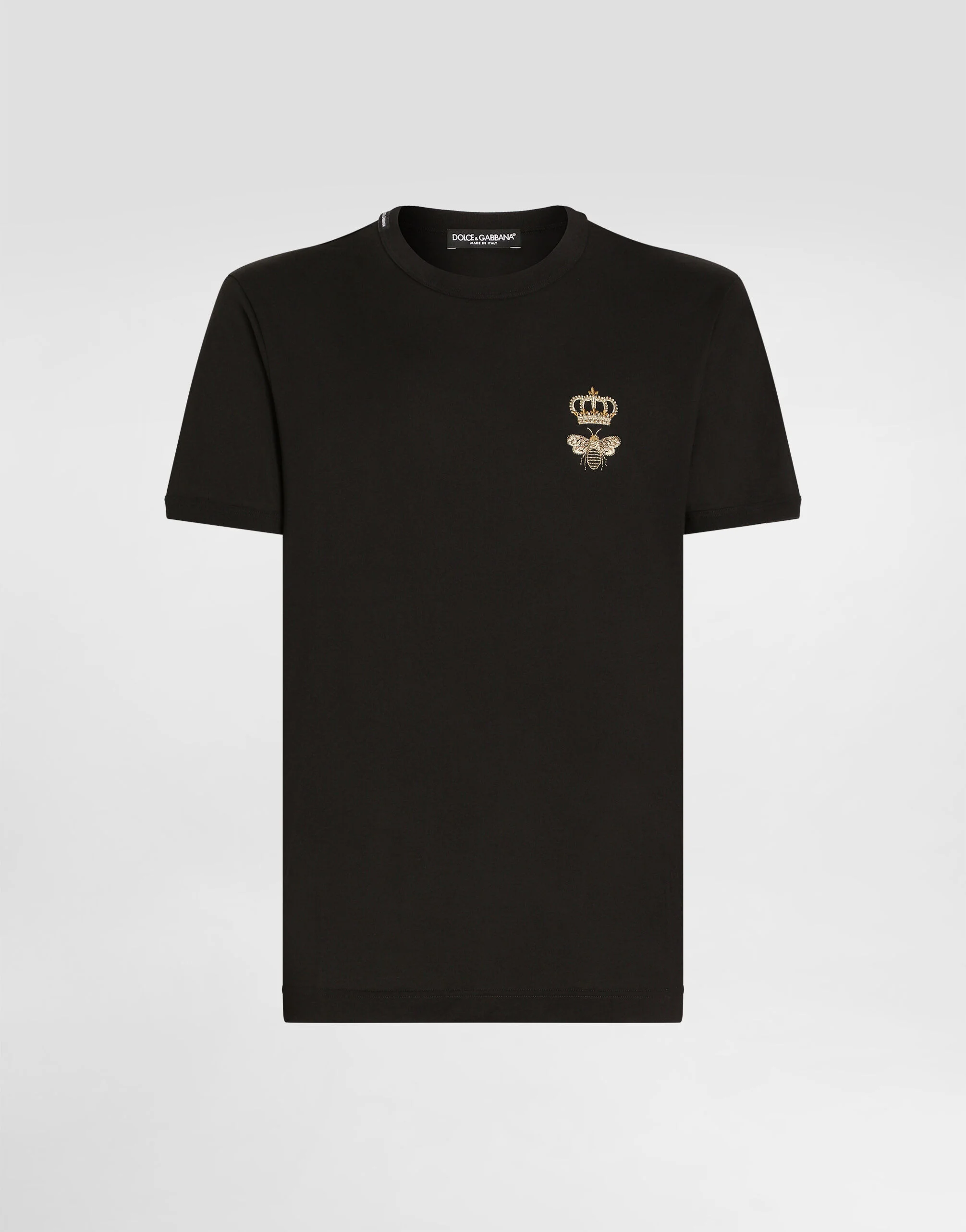 Cotton jersey T-shirt with embroidery: • Black • Regular fit • Round neck • Short sleeves • The model is 185 cm tall and wears a size IT 48 • Made in Italy Care And Details External composition: 100% Cotton