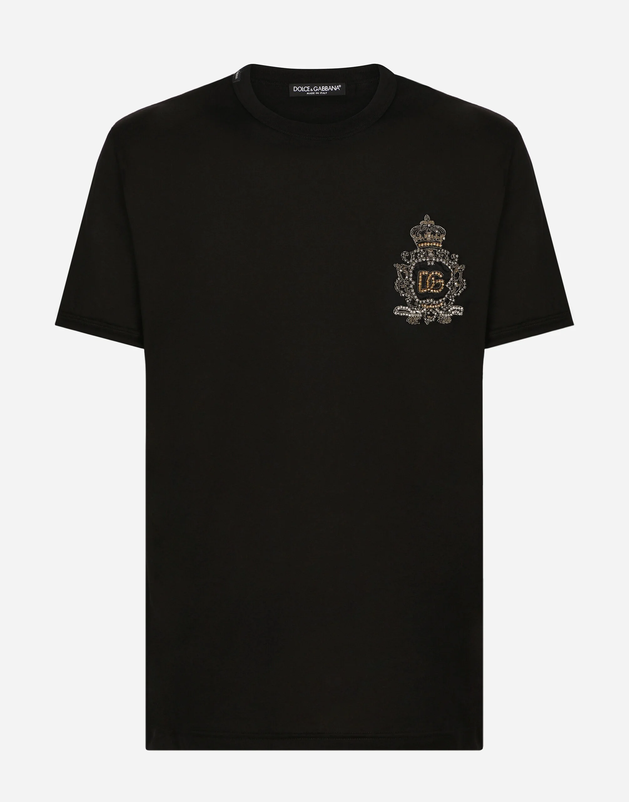Cotton jersey T-shirt with heraldic DG patch. • Regular fit • Round neck • Short sleeves • The piece measures 72 cm from the rear collar seam on a size IT 48 • The model is 185 cm tall and wears a size IT 48 • Made in Italy Care And Details External composition: 100% Cotton