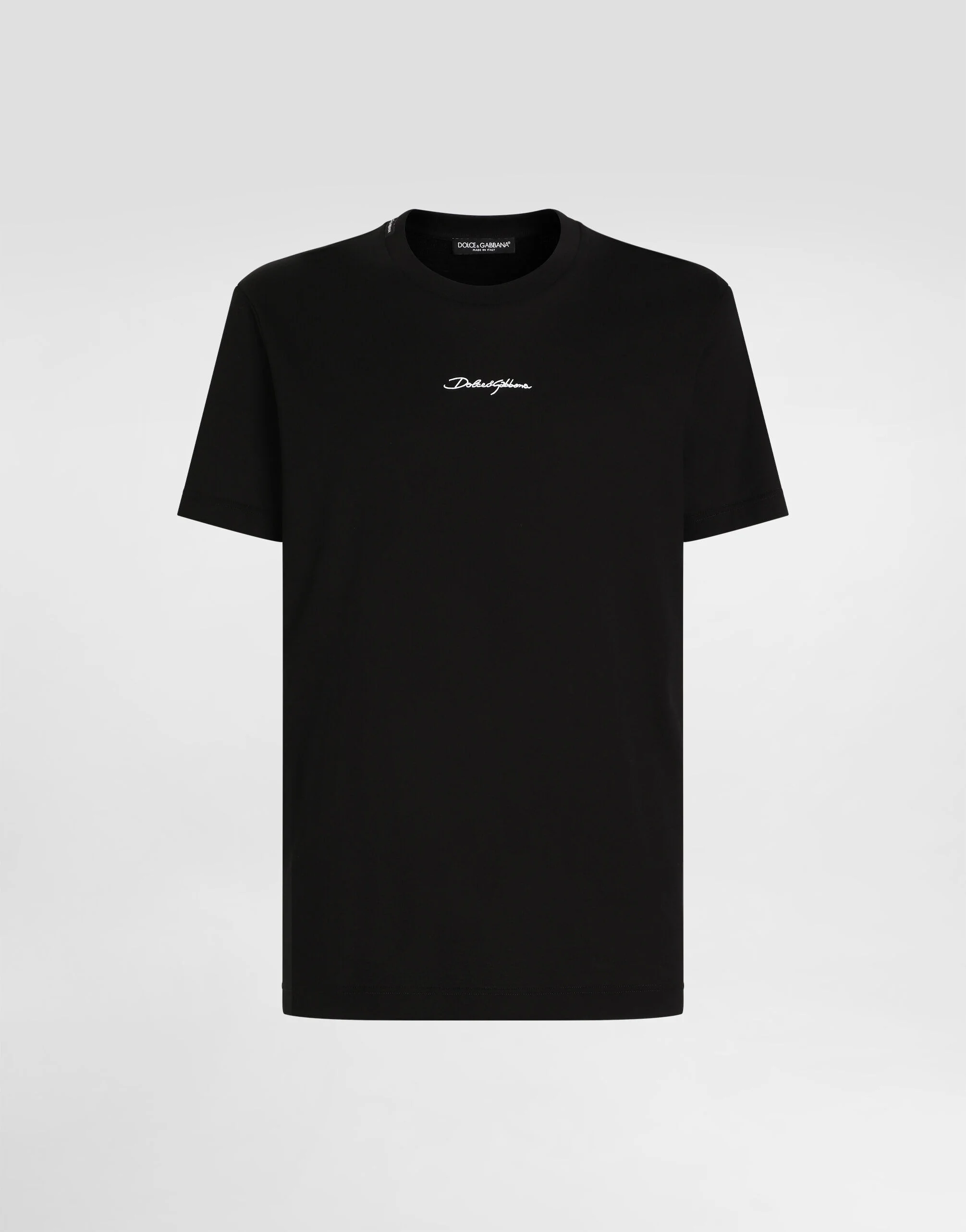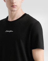 The Palermo collection represents the link between the Sicilian man’s world and the unspoiled nature of the island. A language marked by warm hues – sand, cream, Nero Sicilia black – floral paintings and iconic prints. The Dolce&Gabbana closet must-haves have been reworked in different materials, in pursuit of a new form of harmony. A collection rich in suggestion, such as the stripes inspired by the old mattresses of the 1940s and 1950s, and the timeless aesthetic of the looks. Cotton jersey T-shirt with Dolce&Gabbana patch: • Black • Regular fit • Stretch knit round neck • Short sleeves • The piece measures 71 cm from the rear collar seam on a size IT 48 • Made in Italy External composition: 100% Cotton