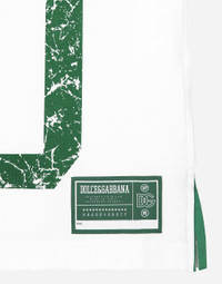 Pictorial, at times volumetric with a textured effect, the decorative “calligraphic-naturalistic” majolica in solid-color green gives life to a collection distinguished by eclectic silhouettes, some stolen from the world of sports, with a cool and light vibe. The vibrant two-tone accenting – green and white – is designed to enhance a series of details, such as the pockets, the green piping paired with the white silk pajamas, the stripes on the polo-shirts, the cuffs on the shirts or the jersey inserts on the T-shirts. Printed cotton jersey T-shirt: • White • Regular fit • Stretch knit round neck • Printed front and sleeves • Short sleeves • The piece measures 73 cm from the rear collar seam on a size IT 48 • Made in Italy External composition: 100% Cotton