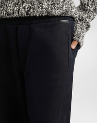 The scene is set for Dolce&Gabbana's distinctive and iconic aesthetic codes in the Collection from Men's Fall/Winter 2025 Fashion Show. The evening lights up with radiant brooches and is enriched with classic suits and blazers of timeless elegance. A versatile and modern trouser, perfect for any occasion thanks to its functional design and attention to detail. Cotton trousers: • Black • Leather label on the front • The model is 185 cm tall and wears a size 48 IT • Made in Italy External Composition: 100% Cotton