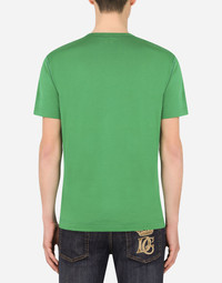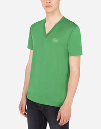 In the Dolce&Gabbana collection, our Sicilian roots and tailoring expertise mix with layering and new volume to create a sophisticated and contemporary update on our signature aesthetic. Cotton jersey T-shirt with rubberized plate featuring the Dolce&Gabbana logo: • Regular fit • V-neck • Short sleeves • The piece measures 73.5 cm - 28.9 inches from the rear collar seam on a size IT 48 • The model is 185 cm - 72.8 inches tall and wears a size IT 48 • Made in Italy Care And Details External composition: 100% Cotton