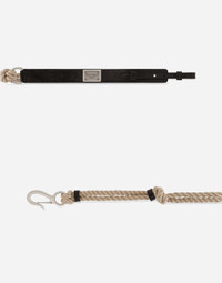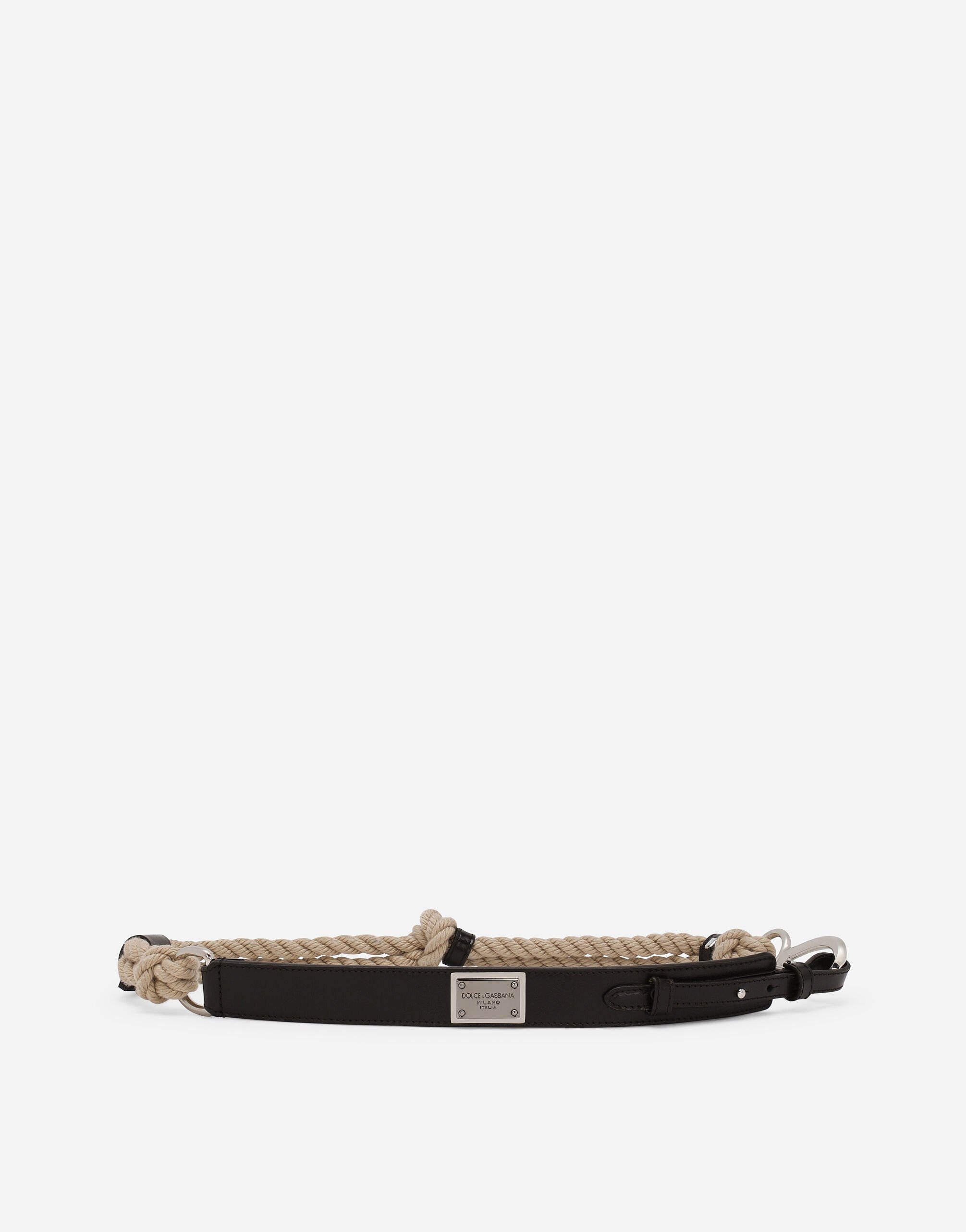 Flaunting bold, modern allure, this new belt comes in cowhide and rope. Featuring a carabiner fastening, with the logo tag. Cowhide and rope belt with carabiner and logo tag: • Brown • The belt strap is 30 mm in height • Carabiner buckle in ruthenium-electroplated metal • Made in Italy External composition: 70% Polyester 30% Calfskin