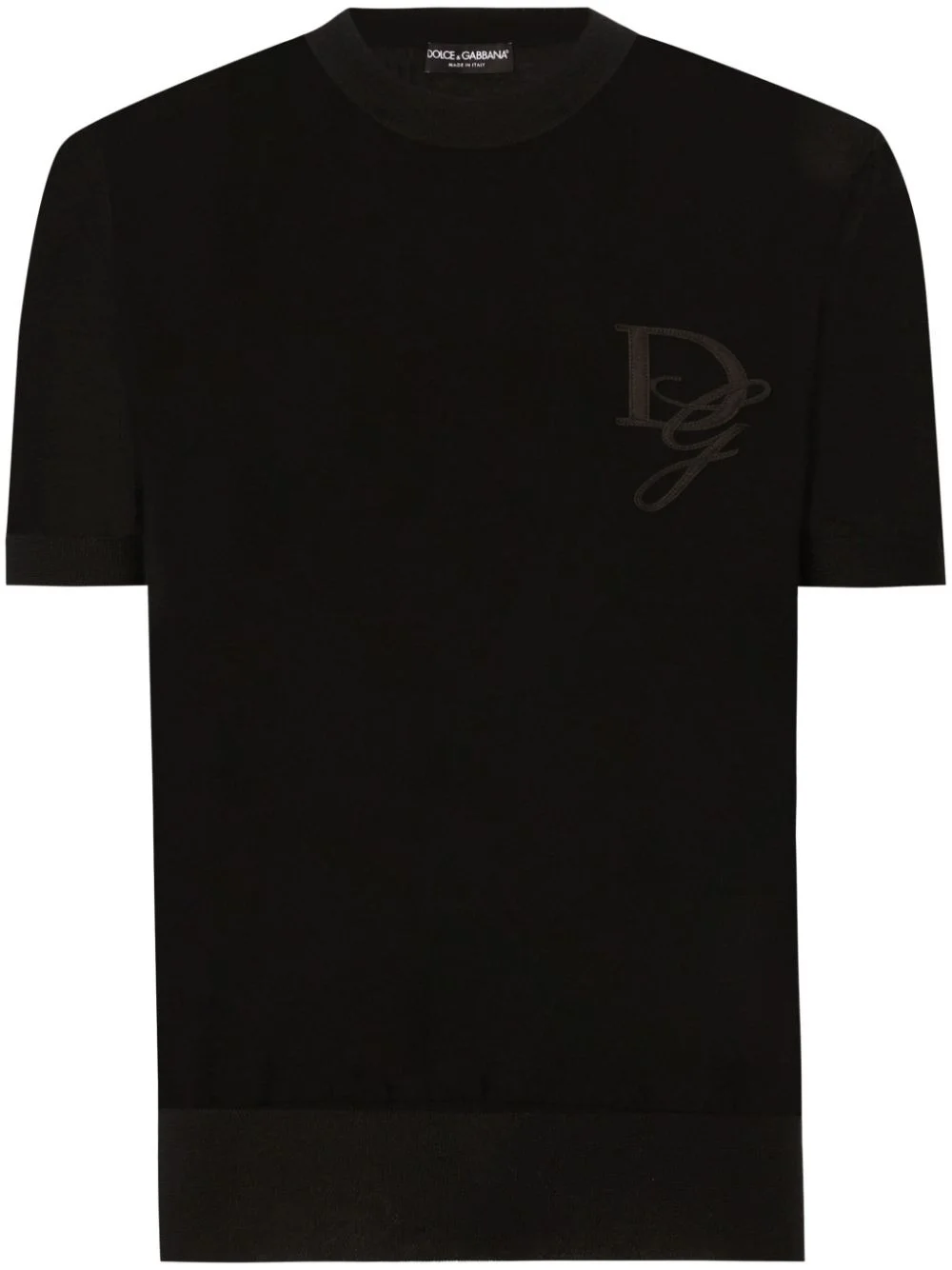 Crew-neck sweater Highlights - Black - Fine knit - Logo patch at the chest - Ribbed crew neck - Short sleeves - Ribbed cuffs Made in Italy Composition Outer: Cashmere 100%