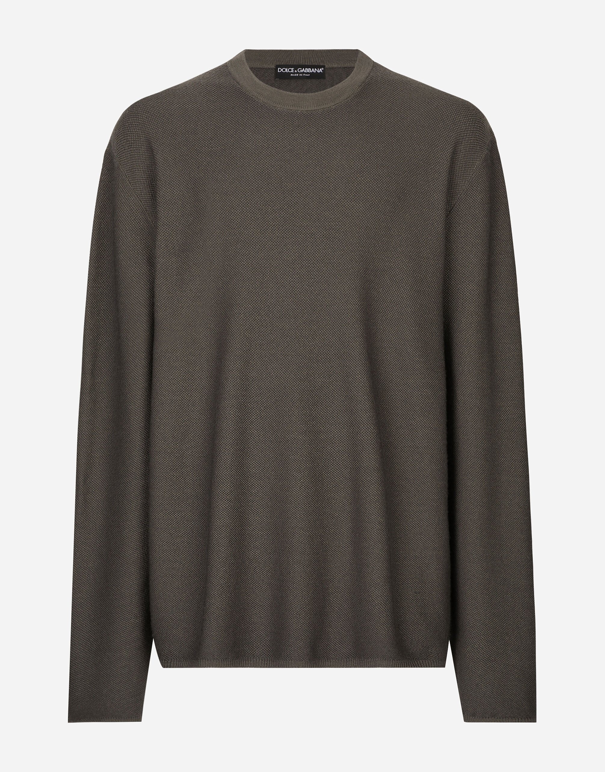 The men's FW 24-25 Re-Edition collection conveys contemporary style that flaunts all the power of the creative DNA that consolidated the brand's image and elevated it to iconic status in the 2000s. Raw-cut details and skilled finishes distinguish pieces with streetwear character: military-inspired jackets and maxi-coats, multi-pocket cargo pants and picot pieces alternate with denim boasting many washes and dyes, thereby redefining an iconic style that is always evolving. Round-neck sweater in garment-dyed wool: • Gray • Oversize fit • Long sleeves • 12-gauge micro-stitch knit • The piece measures 73 cm from the shoulder seam on a size M IT • Made in Italy External composition: 100% Virgin Wool