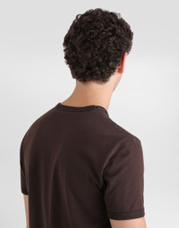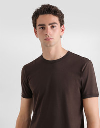 This short-sleeved crew neck t-shirt is an essential piece for any man's wardrobe. Made of soft cotton jersey, it offers comfort and timeless style. Short-sleeved cotton T-shirt: • Brown • Classic fit • Crew neck • Short sleeves • The model is 185 cm tall and wears a size 48 IT • Made in Italy External Composition: 100% Cotton