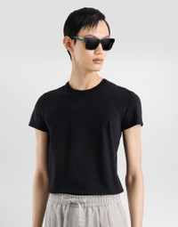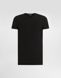 T-shirt in cotton: • Black • Slim fit • Crew neck • Short sleeves • The model is 185 cm tall and wears a size 48 IT • Made in Italy External Composition: 90% Cotton, 10% Elastane