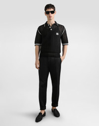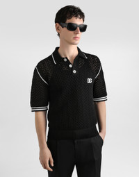Crochet effect cotton polo shirt