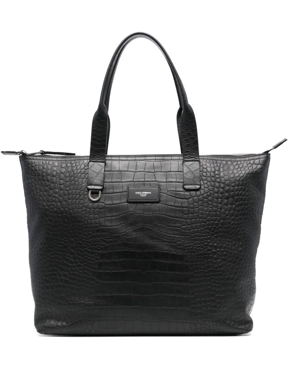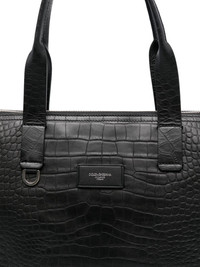 crocodile-embossed leather tote bag Highlights - Black - Top zip fastening - Two rolled top handles - D-ring findings - Internal patch pockets Made in Italy Composition Outer: Calf Leather 100% SIZE & FIT Model measurements Height 6 ft 2 in(1.88 m) Bust/Chest 35.43 in(90 cm) Hips 35.03 in(89 cm) Waist 27.95 in(71 cm) Measurement DEPTH 5.51 in(14 cm) HANDLE 9.44 in(24 cm) HEIGHT 12.99 in(33 cm) WIDTH 18.89 in(48 cm)
