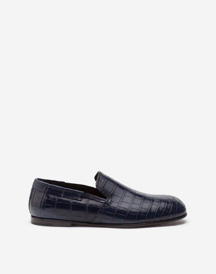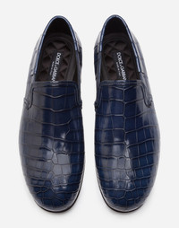 Iconic and sophisticated, these Amalfi slip-on shoes come in fine materials. Made from crocodile nappa, they have been designed for the man who loves to express his timeless elegance: • Crocodile nappa upper • Quilted satin insole and branded label • Sole with fresa bombé • Leather sole • Made in Italy Care And Details External composition: 100% Crocodile Leather