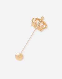 The crown stick pin celebrates the meticulous care and technical skill demanded by the jeweller’s art. In addition to the filigree globe are small gold spheres that alternate with sinuous curls, as well as five large volutes that emphasise the rounded effect of the composition. Uncoloured diamonds enrich the overall composition, highlighting the exquisite workmanship with their luminosity. This stick pin feature a unique closure, with a rose-cut diamond and an embossed logo. Technical specifications: Gold 18 Kt. Gemstones: n.35 uncoloured diamonds. Made in Italy. Yellow 18 kt gold
