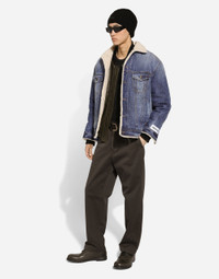 The men's FW 24-25 Re-Edition collection conveys contemporary style that flaunts all the power of the creative DNA that consolidated the brand's image and elevated it to iconic status in the 2000s. Raw-cut details and skilled finishes distinguish pieces with streetwear character: military-inspired jackets and maxi-coats, multi-pocket cargo pants and picot pieces alternate with denim boasting many washes and dyes, thereby redefining an iconic style that is always evolving. Denim and shearling jacket: • Blue • Regular fit • Branded metal buttons on the front • Pockets with buttons • Sheepskin lining • Quilted lining on sleeves • Metal logo tag on center back • The piece measures 69 cm from the rear collar seam on a size IT 48 • Made in Italy External composition: 100% Cotton Internal composition: 78% Cotton 22% Polyester