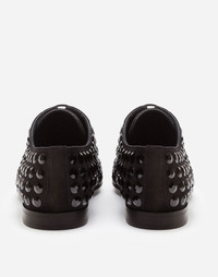 Suede derby shoes with fusible rhinestone detailing