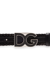 DG buckle interwoven belt Buckle up. It's time to enter the Dolce & Gabbana world. This logo belt from features an interwoven design and a cut-out logo plaque buckle. Securing your style and your trousers. Made in Italy Composition Goat Skin 90%, Calf Leather 10%