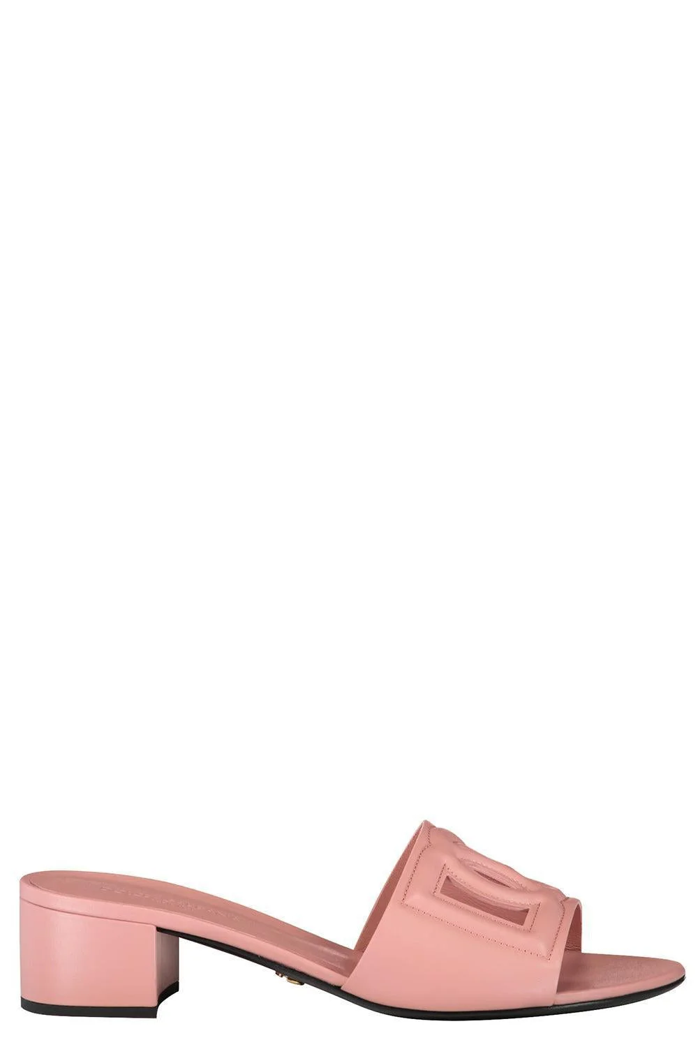 DETAILS AND INSIGHT Dolce & Gabbana dg logo sliders in rosa. 100% Calfskin Internal composition: 60% Calfskin 40% Goatskin External composition: 100% Calfskin Heel Height: 40mm Made in Italy Style CR1755-AY329-80405