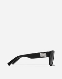 A new version of the iconic Domenico sunglasses, enriched with a silver DG logo plaque. • Black acetate frame • Black acetate temples • Dark grey lenses • 100% UV protection • Size lens - bridge - temple: 50 - 21 - 140 mm • Fitting: Standard • Packaging: Institutional • Made in Italy