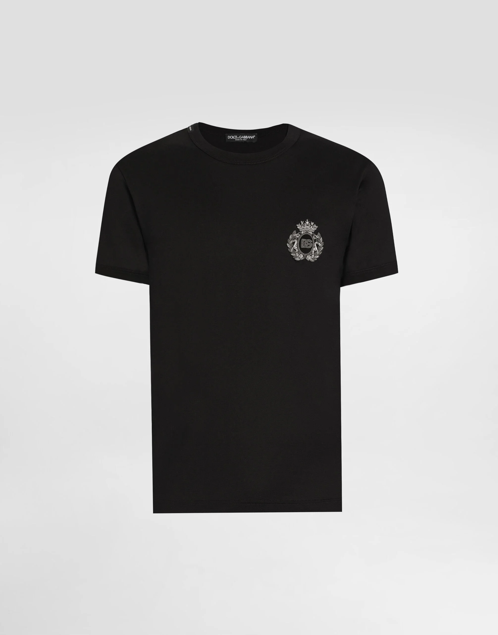 This classic t-shirt represents the essence of comfort and timeless style, perfect for any casual occasion. Cotton t-shirt with heraldic patch: • Black • Classic fit • Crew neck • Short sleeves • The model is 185 cm tall and wears a size 48 IT • Made in Italy External Composition: 100% Cotton