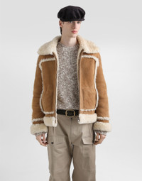 This sheepskin jacket is ideal for facing the coldest days in style thanks to its fine workmanship and modern design. Sheepskin jacket: • Beige • With exposed shearling details on the collar, sleeves, and hem • Made in Italy External Composition: 100% Sheepskin