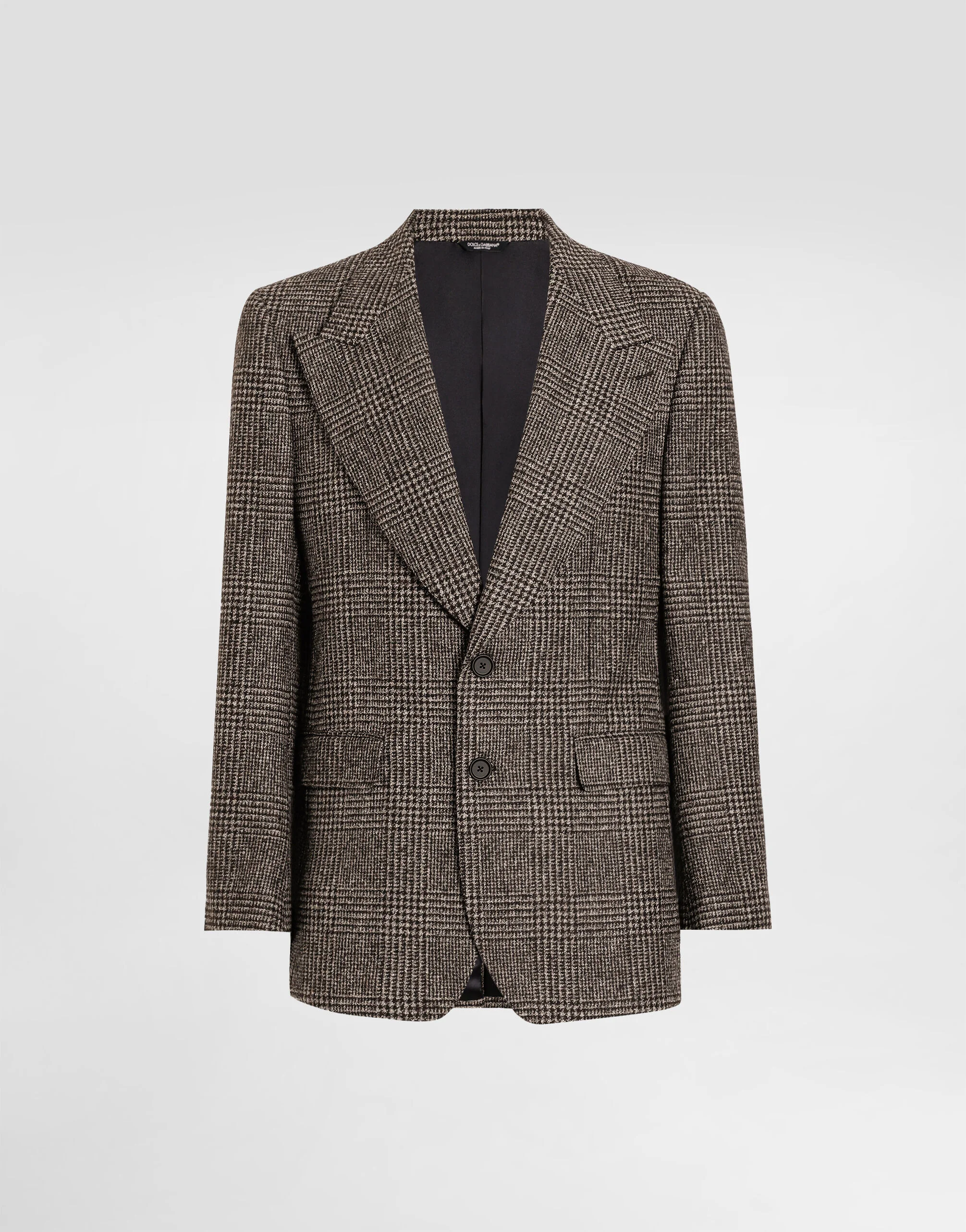 The scene is set for Dolce&Gabbana's distinctive and iconic aesthetic codes in the Collection from Men's Fall/Winter 2025 Fashion Show. The evening lights up with radiant brooches and is enriched with classic suits and blazers of timeless elegance. This single-breasted jacket is a symbol of timeless elegance, perfect for those looking for a refined and modern look. Glen plaid single-breasted jacket: • Multi-colored • Sicily shape • Rounded lapels • Two-button closure • Lined • The model is 185 cm tall and wears a size 48 IT • Made in Italy External Composition: 28% Alpaca, 27% Wool, 25% Cotton, 20% Polyamide Internal Composition: 100% Silk