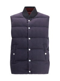 DOLCE&GABBANA'S REVERSIBLE DOWN VEST COMBINES PRACTICALITY AND STYLE WITH A PADDED AND QUILTED DESIGN. EQUIPPED WITH TWO BUTTONED WELT POCKETS AND SNAP BUTTON CLOSURE, IT FEATURES A RIBBED COLLAR THAT COMPLETES THE LOOK WITH A TOUCH OF COMFORT AND CHARACTER. REVERSIBILITY MAKES THE GARMENT VERSATILE AND IDEAL FOR A VARIETY OF OCCASIONS. RTW IT Gender: Men Material: COTTON | VISCOSE | POLYAMIDE Color: BLUE Made in: Italy Product ID: G9BSPTFCTAB_S8031 *Import tax/duty will be calculated at checkout (If applicable)
