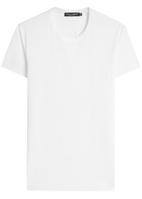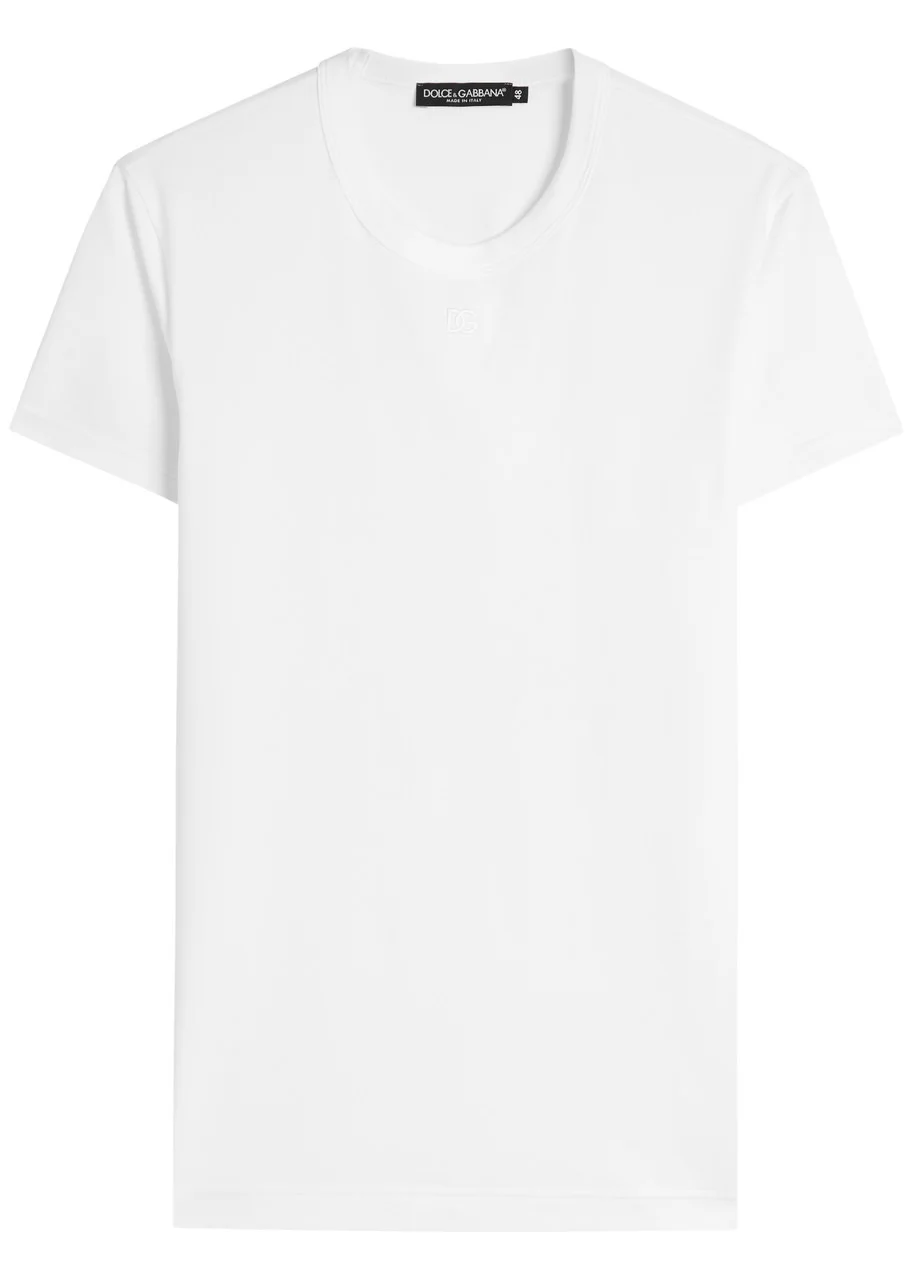 Info & Care Dolce & Gabbana stretch-cotton T-shirt Ribbed crew-neck, logo embroidery at front Slips on 90% cotton, 10% elastane Machine wash Size & Fit Length shoulder to hem: 27 inches/ 68.5cm Midweight Slim fit Model is 6'1"/ 185cm, chest size 38.5 inches and wears a size;IT48