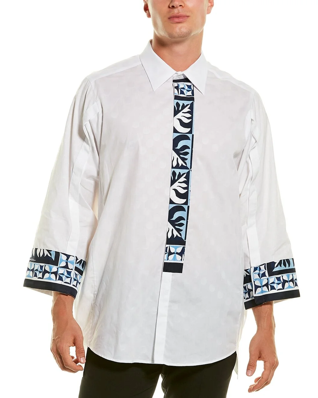 - About the brand: Inspired and versatile pieces infused with Italian culture. - Majolica Print Mazzini Fit Woven Shirt in white multi with spread collar, printed trim and 3/4-length sleeves - Please note: Size selections are European. For US conversions, please reference the size chart. - Approximately 28in from shoulder to hem - Model is 6'0 and is wearing a size 41. Measurements may vary slightly by size. - Button placket - 100% cotton - Machine wash - Made in Italy - Our products are 100% genuine. In some cases we purchase merchandise from trusted independent suppliers and not directly from the brand owner. In all cases we stand by the authenticity of every product sold on our site.