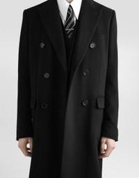 This double-breasted wool and cashmere coat is an essential piece for the modern man, combining elegance and functionality to face the coldest days in style. Double-breasted cashmere wool coat: • Black • Unlined • The model is 185 cm tall and wears size 48 IT • Made in Italy External Composition: 90% Virgin Wool, 10% Cashmere
