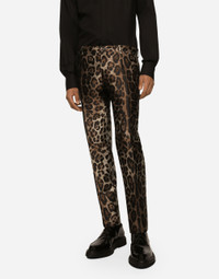 Tailored three-piece suit in leopard-design jacquard: • Animal print • Slim Sicilia fit • Jacket with peak lapels, flap pockets and breast pocket, inner pockets and central vent • Concealed double-breasted buttoning on the front • Lined • Pants with front slant pockets and rear buttoned welt pockets • The jacket measures 73.5 cm from the back collar seam on a size IT 48 • The pants measure 115 cm on the outer leg and the hem is 17.5 cm wide on a size IT 48 • The model is 185 cm tall and wears a size IT 48 • Made in Italy Care And Details External composition: 100% Polyester Internal composition: 85% Silk 15% Viscose