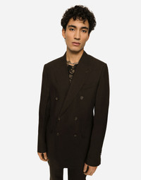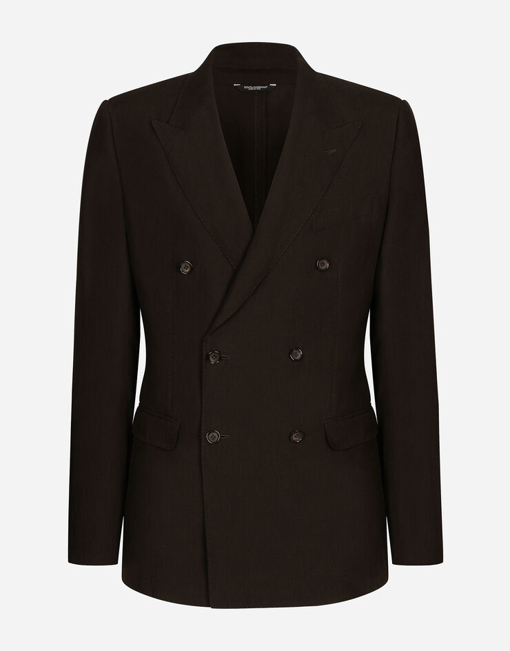 Double-breasted tailored linen jacket: • Brown • Regular Taormina fit • Peak lapels • Button fastenings on the front • Outer flap pockets and breast pocket, inner welt pockets • Buttoned cuffs • Central vent • Unlined • The piece measures 73.5 cm from the rear collar seam on a size IT 48 • The model is 185 cm tall and wears a size IT 48 • Made in Italy Care And Details External composition: 100% Linen