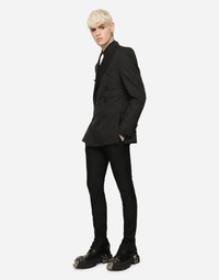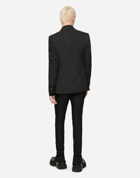 Elegant double-breasted tuxedo jacket in micro-patterned technical wool with canneté details. • Slim Sicilia fit • Peak lapels • Covered buttons at the front • Outer welt pockets with flap and breast pocket, inner welt pockets • Buttoned cuffs • Front side vents • Lined • The piece measures 73.5 cm from the rear collar seam on a size IT 48 • The model is 185 cm tall and wears a size IT 48 • Made in Italy Care And Details External composition: 63% Wool 17% Polyester Internal composition: 100% Viscose