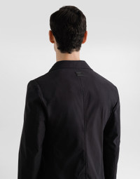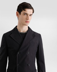This double-breasted jacket is a versatile and sophisticated garment, ideal for those looking for a stylish yet functional look. With its unique design and refined details, it is perfect for any occasion. Double-Breasted canvas jacket: • Black • Peak lapels • With buttons • Unlined • The model is 185 cm tall and wears a size 48 IT • Made in Italy External Composition: 95% Polyamide, 5% Elastane Internal Composition: 67% Viscose, 33% Polyester