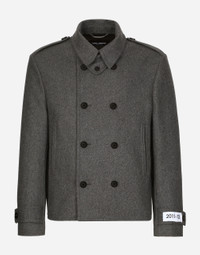 The men's FW 24-25 Re-Edition collection conveys contemporary style that flaunts all the power of the creative DNA that consolidated the brand's image and elevated it to iconic status in the 2000s. Raw-cut details and skilled finishes distinguish pieces with streetwear character: military-inspired jackets and maxi-coats, multi-pocket cargo pants and picot pieces alternate with denim boasting many washes and dyes, thereby redefining an iconic style that is always evolving. Double-breasted pea coat in vintage-look cashmere and wool with the Re-Edition label: • Gray • Regular fit • Shirt collar • Tab details on shoulders • Button fastenings • Welt pockets on the exterior • Strap and buttons on the cuffs • Branded metal tag underneath the collar • Padded lining • The piece measures 66 cm from the rear collar seam on a size IT 48 • Made in Italy External composition: 72% Wool 18% Polyamide 5% Cashmere 5% Cotton Internal composition: 100% Viscose