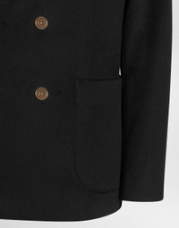 This double-breasted cashmere jacket represents timeless elegance and quality Italian craftsmanship. Perfect for the modern man who appreciates luxury and comfort in every detail. Double-breasted cashmere jacket: • Black • Portofino shape • With buttons • Unlined • The model is 185 cm tall and wears a size 48 IT • Made in Italy External Composition: 97% Cashmere, 3% Elastane Internal Composition: 100% Viscose