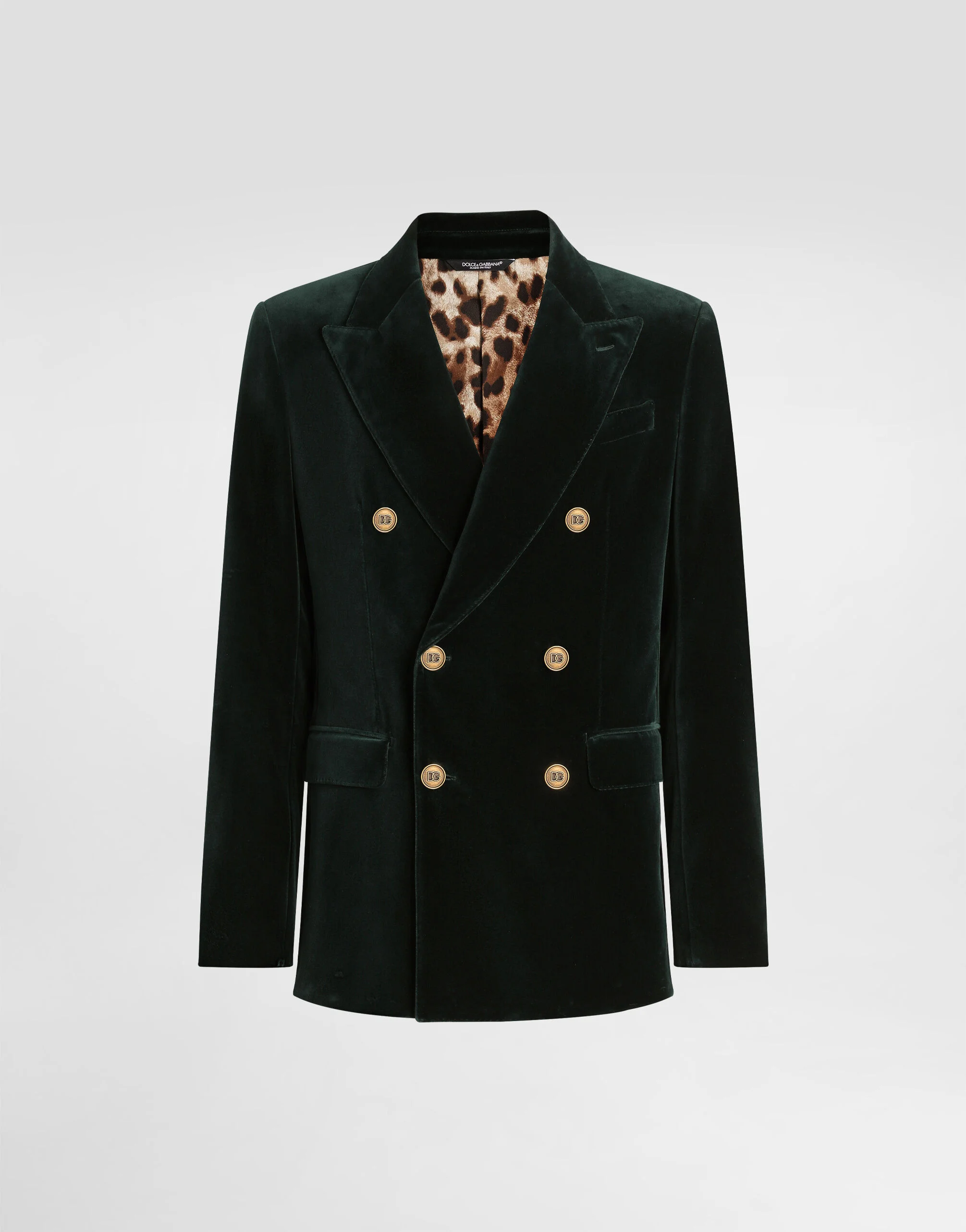 Double-breasted cotton velvet jacket: • Green • Sicilia Light deconstructed shape • Rounded lapels • With buttons • Structured and lined • The model is 185 cm tall and wears a size 48 IT • Made in Italy External Composition: 100% Cotton Internal Composition: 100% Polyester