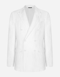 Double-breasted tailored linen jacket: • White • Regular Taormina fit • Peak lapels • Button fastenings on the front • Outer flap pockets and breast pocket, inner welt pockets • Buttoned cuffs • Central vent • Unlined • The piece measures 73.5 cm from the rear collar seam on a size IT 48 • The model is 185 cm tall and wears a size IT 48 • Made in Italy Care And Details External composition: 100% Linen