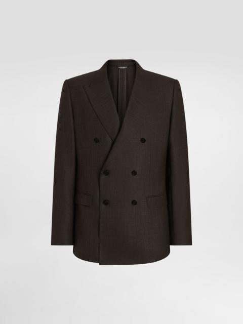 This double-breasted jacket combines elegance and functionality, perfect for the modern man looking for a versatile and sophisticated garment. Double-breasted wool jacket: • Multi-colored • Taormina shape • Structured and unlined • The model is 185 cm tall and wears a size 48 IT • Made in Italy