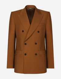 In the “Sartoriale” collection, iconic Italian sartorial heritage is presented from a new perspective, made up of lines, silhouettes and details, concealed buttoning, geometric lapels, and jackets that have seen their proportions completely overhauled. The tale is a journey embarked upon to discover a new kind of tailoring that is perfect in terms of fit, with meticulous attention to detail, that strives to speak and represent the style of the wearer, through small - yet significant - details that will make every piece unique. Tailored double-breasted wool jacket: • Brown • Slim Sicilia fit • Peak lapels • Button fastenings on the front • Outer flap pockets and breast pocket, inner welt pockets with button • Buttoned cuffs • Central vent • Lined • The piece measures 73.5 cm from the rear collar seam on a size IT 48 • Made in Italy External composition: 100% Virgin Wool Internal composition: 100% Silk