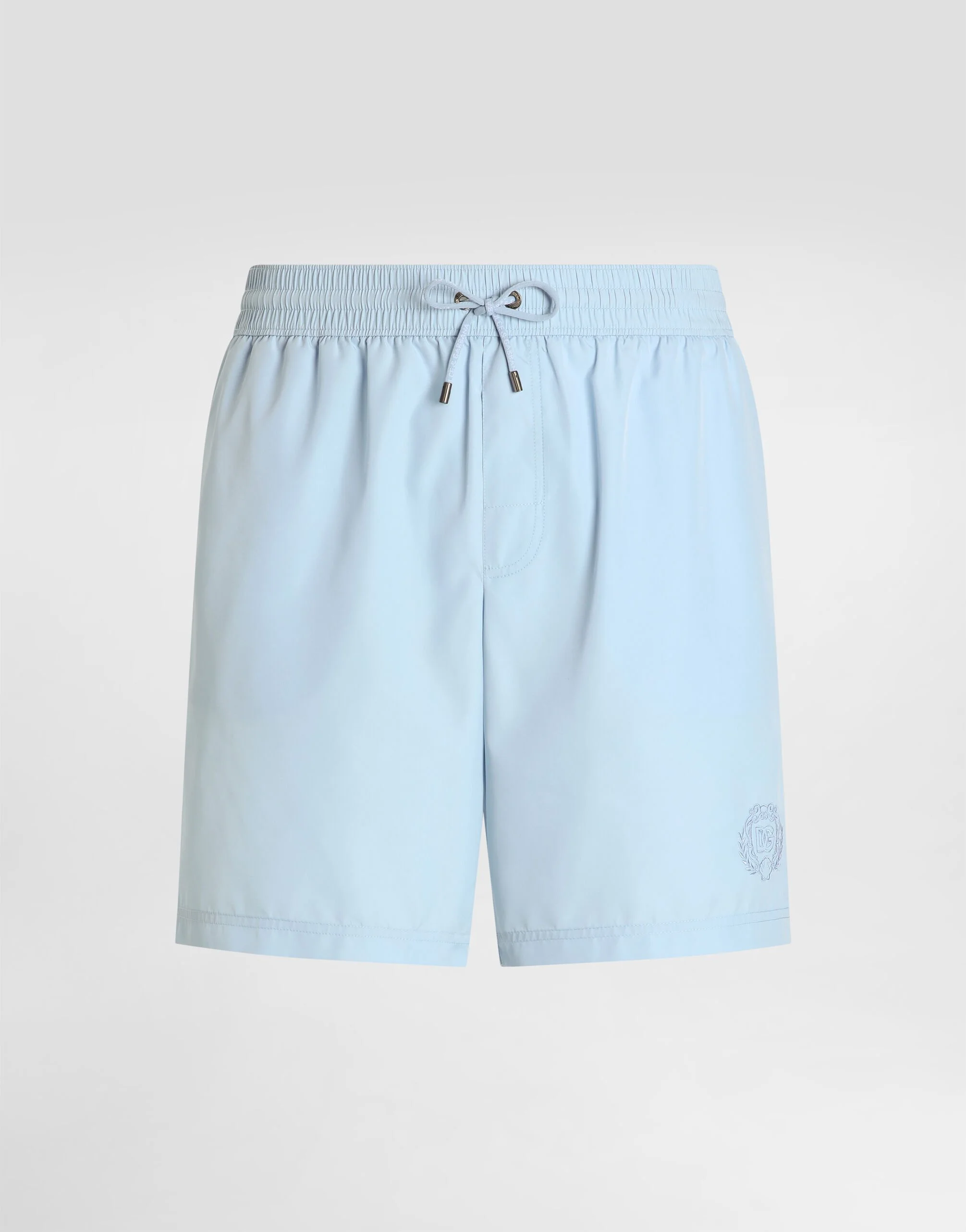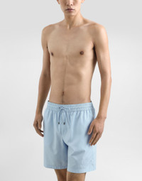 This medium boxer shorts with clutch bag are ideal for those looking for comfort and style during summer days. Made from recycled materials, it is a sustainable choice for your beach wardrobe. medium swim boxer shorts: • Light blue • Velcro for pocket flap closure • Inner briefs • Equipped with a coordinated pouch with zip closure • Made in Italy