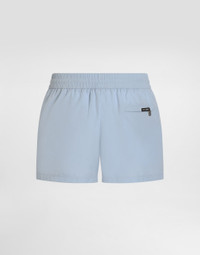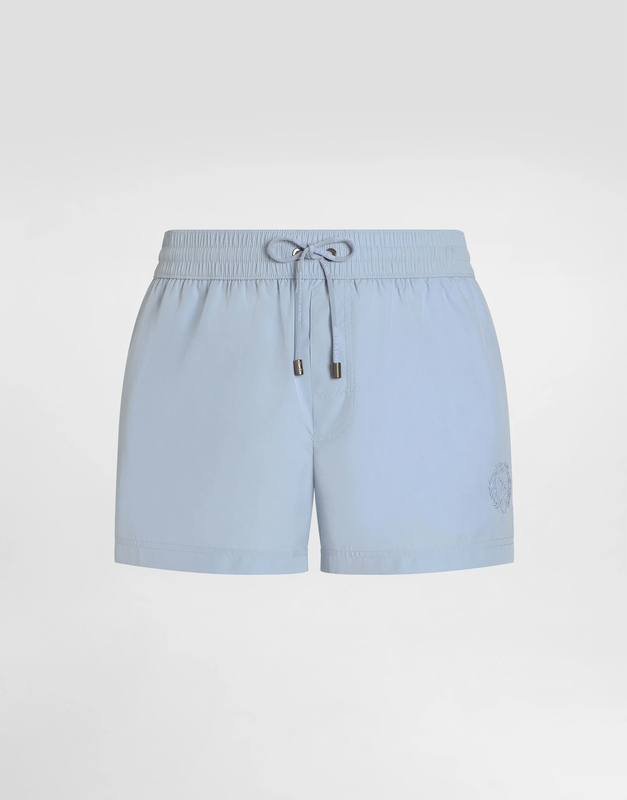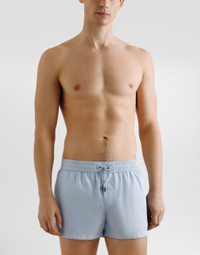 This cropped boxer with the coordinated clutch is a summer essential, perfect for those looking for style and comfort during days at the beach. short swim boxer shorts: • Light blue • Velcro for pocket flap closure • Inner briefs • Equipped with a coordinated pouch with zip closure • Made in Italy External Composition: 100% Polyester Internal composition: 12% Elastane, 88% Polyamide