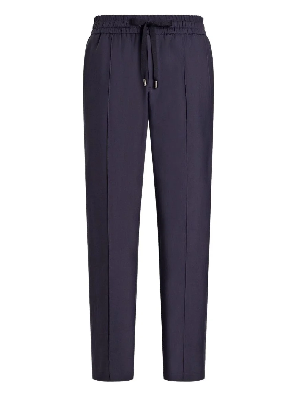 drawstring-waist trousers Highlights - Navy blue - Elasticated waistband - Adjustable drawstring - Front pressed creases - Side pockets Made in Italy Composition Cotton 65%, Silk 35%