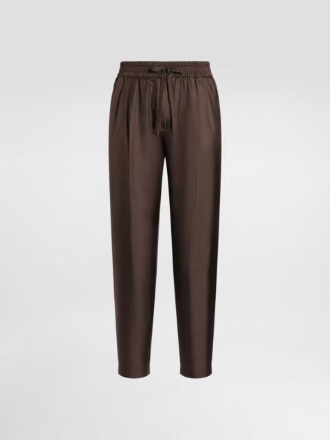 These classic joggers are a must-have for those looking for comfort and style on any occasion. Made of silk twill, they offer a luxurious and soft feel. Silk twill jogging trousers: • Black • The model is 185 cm tall and wears a size 48 IT • Made in Italy External Composition: 100% Silk