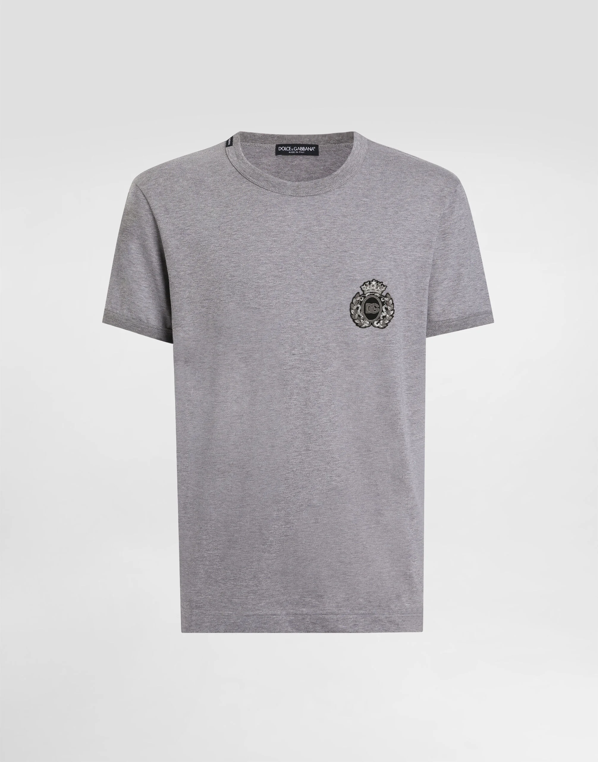 This classic short-sleeved t-shirt is a must-have in any man's wardrobe. Perfect for a casual and versatile look, it easily adapts to different styles and occasions. Cotton t-shirt with heraldic patch: • Grey • Classic fit • Crew neck • Short sleeves • The model is 185 cm tall and wears a size 48 IT • Made in Italy External Composition: 100% Cotton