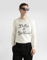 This long-sleeved crew neck pullover is an essential item in a man's wardrobe, perfect for any occasion thanks to its classic design and quality materials. Wool pullover with intarsia: • White • Crew neck • Long sleeves • The model is 185 cm tall and wears a size 48 IT • Made in Italy External Composition: 100% Virgin Wool