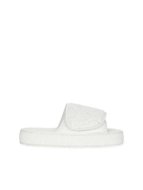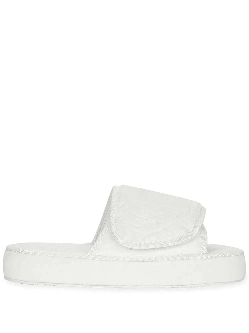 embossed-logo touch-strap slippers white cotton slip-on style front touch-strap fastening adjustable fit flatform sole Made in Italy Composition Sole: Cotton 100% Outer: Cotton 100% Lining: Cotton 100%
