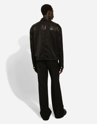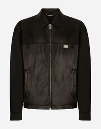 Leather and fabric bomber jacket with a metal tag featuring the Dolce&Gabbana logo: • Black • Shirt collar • Front zipper fastening • Fabric sleeves with press-stud buttons on the cuffs • Leather front and leather and fabric back • Inner and outer pockets with zipper • Lined • The piece measures 64 cm from the rear collar seam on a size IT 48 • Made in Italy Leather and fabric bomber jacket with a metal tag featuring the Dolce&Gabbana logo: • Black • Shirt collar • Front zipper fastening • Fabric sleeves with press-stud buttons on the cuffs • Leather front and leather and fabric back • Inner and outer pockets with zipper • Lined • The piece measures 64 cm from the rear collar seam on a size IT 48 • Made in Italy External composition: 70% Lambskin 30% Polyamide Internal composition: 100% Polyester