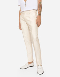 Elegant tailored two-piece suit in silk faille: • Slim Sicilia fit • Jacket with peak lapels, flap pockets and breast pocket, two inner pockets and side vents • Single-breasted fastening with a double button, lined • Pants with front slant pockets and rear buttoned welt pockets • The jacket measures 73.5 cm from the back collar seam on a size IT 48 • The pants measure 115 cm on the outer leg and the hem is 17.5 cm wide on a size IT 48 • The model is 185 cm tall and wears a size IT 48 • Made in Italy Care And Details External composition: 100% Silk Internal composition: 82% Viscose 18% Silk